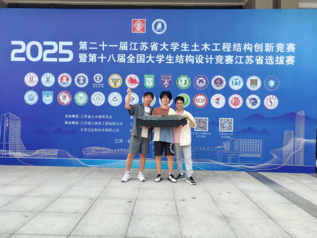 在刚刚落幕的2025年江苏省大学生土木工程结构创新竞赛暨第十八届全国大学生结构设计竞赛江苏省选拔赛中,必威西汉姆联土木学子再创辉煌,荣获模型加载组特等奖1项(总排名第2名)、二等奖1项,以及模型展示组一等奖1项(总排名第5名)。