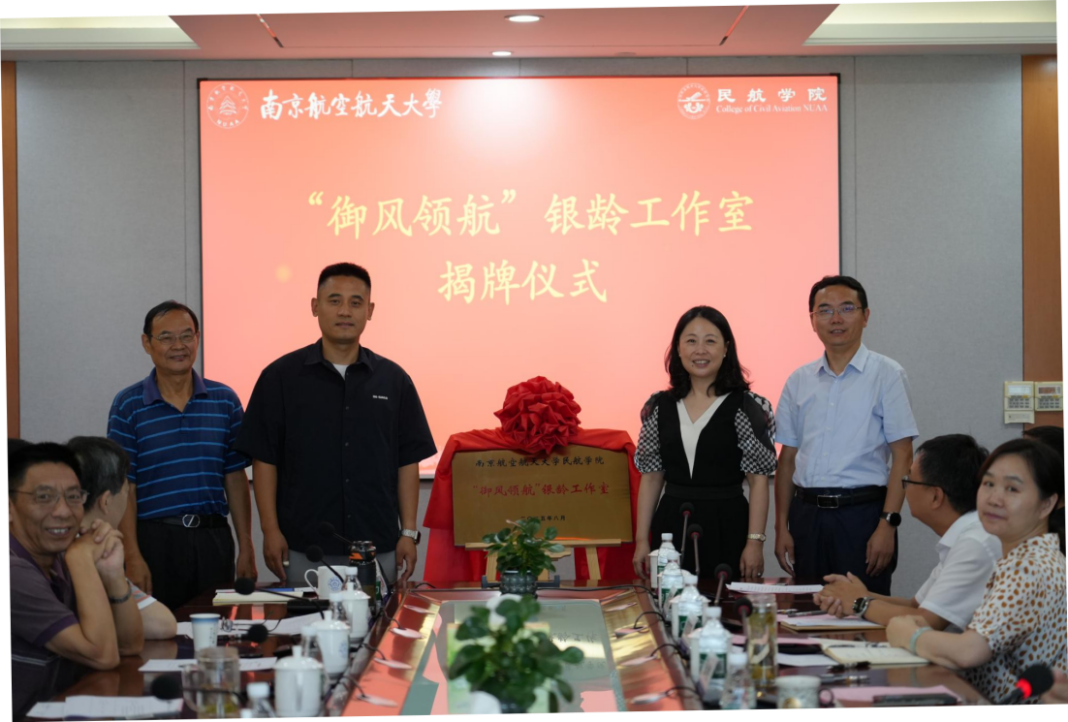 陈峰、朱金福、学院党委书记李君、院长张卓然共同为“御风领航”银龄工作室揭牌。未来,工作室将围绕党政所需、思政所需、青年师生所需,发挥“五老”优势,扎实推进关心下一代工作示范区创建单位建设,助力学院人才培养和高质量发展。