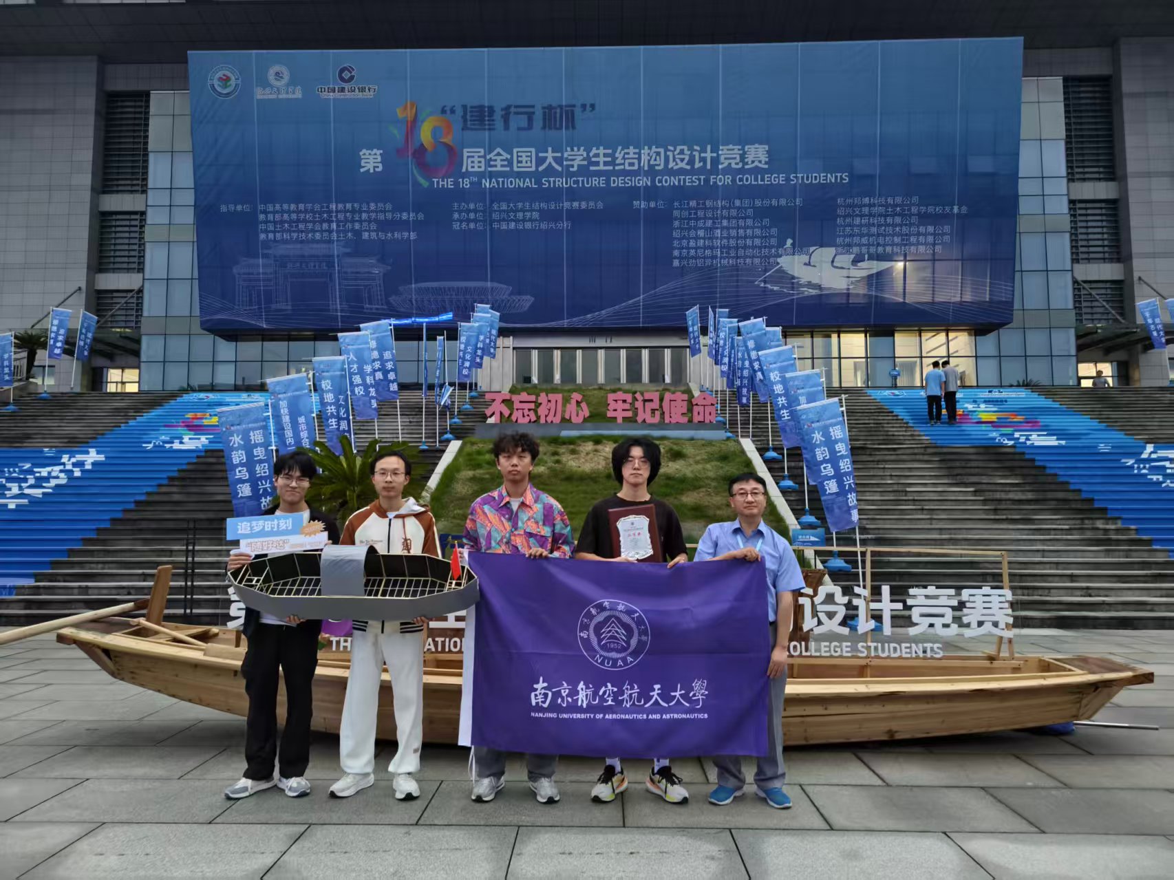 本届竞赛共有来自全国591所高校的1792支代表队参加。经过初赛的比拼,来自清华大学、浙江大学、同济大学、东南大学、betway西汉姆联等在内的全国119所高校120支队伍代表队闯入决赛,同台竞技。大赛以独具绍兴地方特色的乌篷船为原型,加载砝码采用绍兴黄酒酒坛造型,要求参赛队伍现场设计并制作乌篷船结构模型,通过加载、造浪冲击等测试,检验结构模型的承载能力、稳定性、抗撞击性和防水性等。这也是该项竞赛开办以来第一次结构模型在水上进行加载测试。经过15小时现场模型制作,以及陈述答辩、模型加载等环节激烈比拼,我院参赛团队获得二等奖。