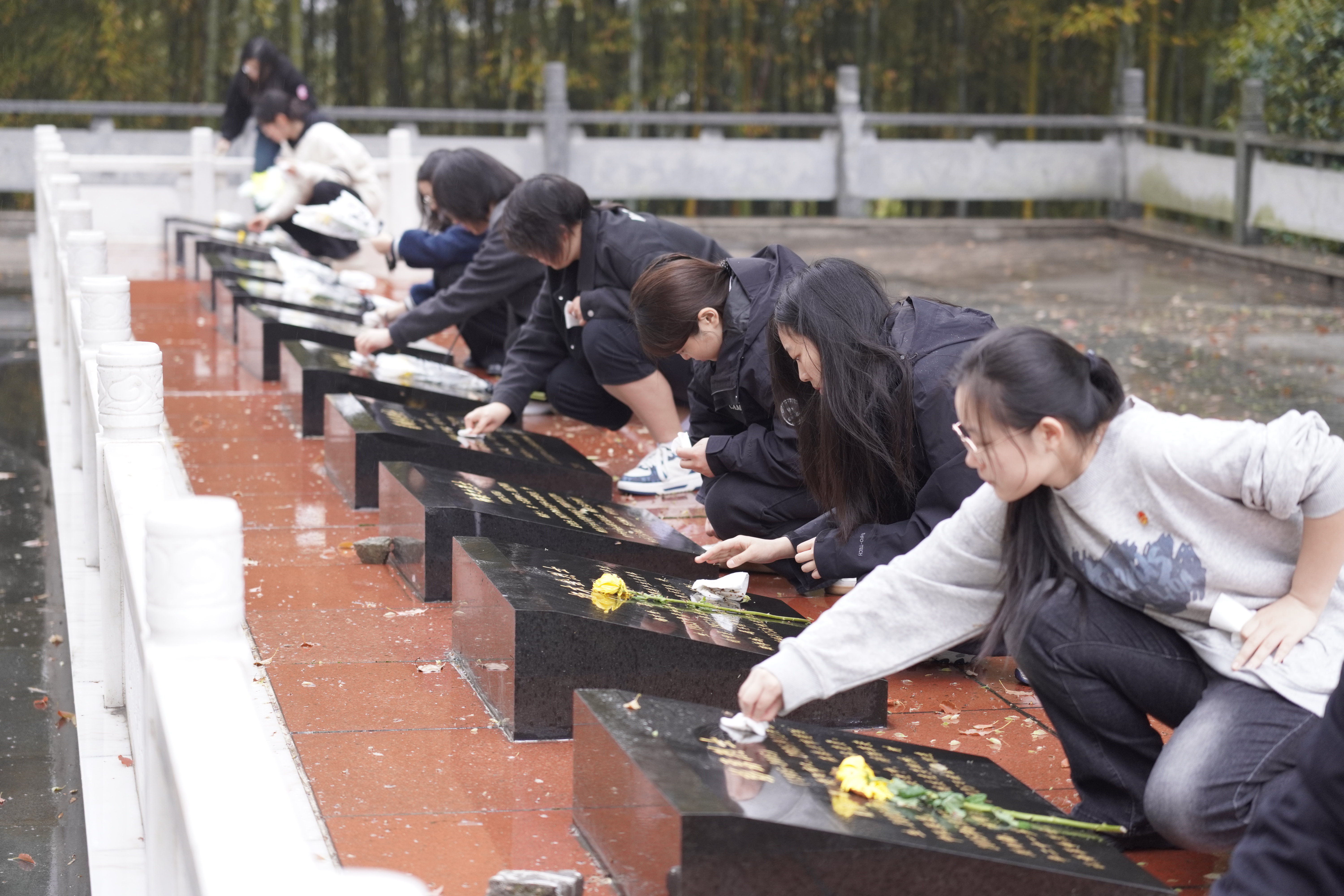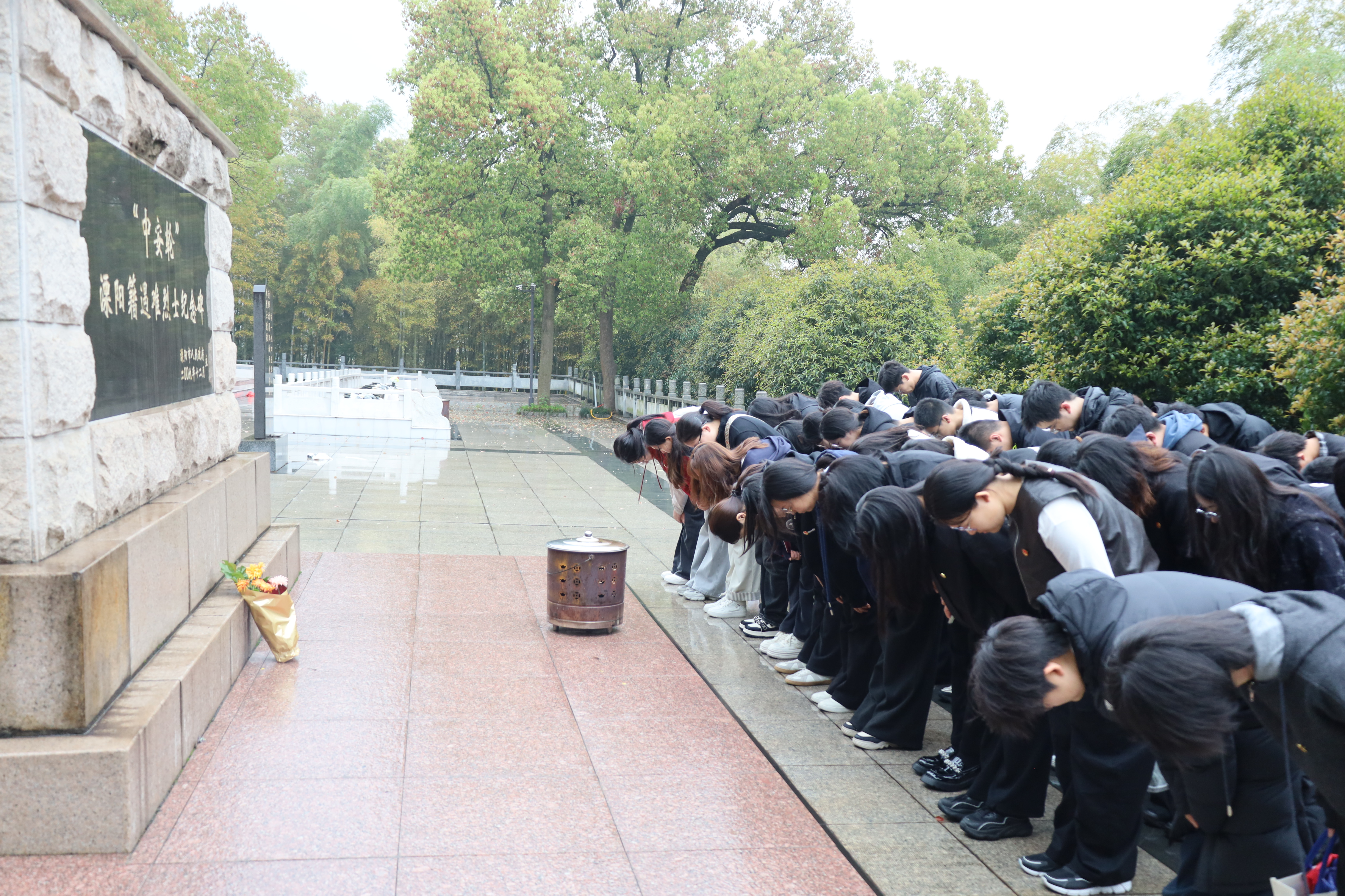 在烈士纪念碑前,全体人员肃立默哀,依次敬献鲜花,以最庄重的仪式表达对英烈的深切哀思与崇高敬意。随后,学生们前往罗忠毅和廖海涛烈士墓、钟期光上将及夫人墓、“中安轮”溧阳籍遇难烈士纪念碑等墓区进行瞻仰与祭奠。学生们细心擦拭墓碑,清理周边环境,用实际行动表达对先烈的缅怀与敬仰,深刻感悟先烈精神。